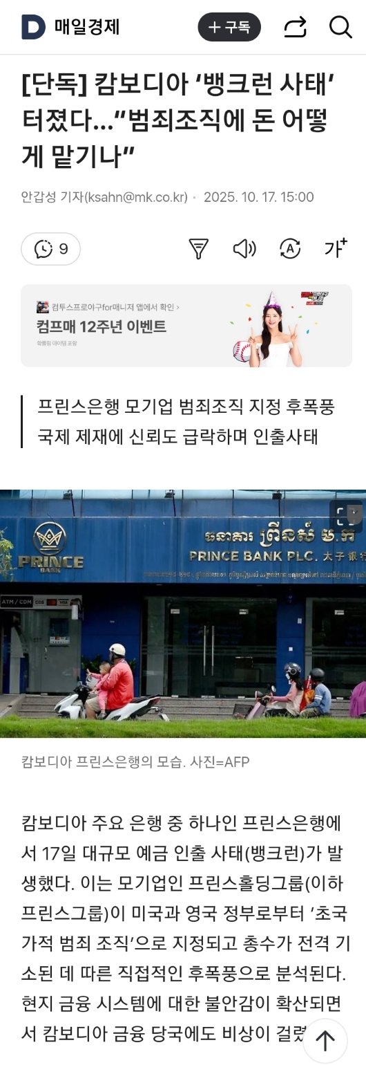 캄보디아 뱅크런 사태 터졌다. 페이지 정보 작성자 바카라왕자 댓글 0건 조회 218회 작성일 25-10-17 16:29 목록 본문 페이스북 공유 트위터 공유 프린스그룹 자산동결로 계열사 프린스은행으로 사람들이 몰려가서 뱅크런 터짐시발 은행도 가지고 있었냐? ㅋㅋㅋ초거대 은행을 가지고 있는 범죄조직 이었네 ㅎㄷㄷㄷ 추천0 비추천0 댓글 0 댓글목록 등록된 댓글이 없습니다.