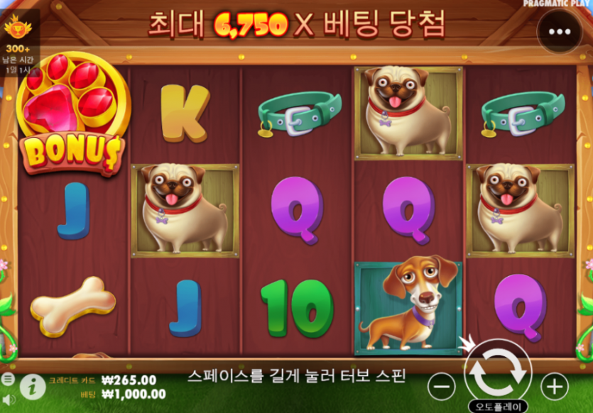 1000원 베팅으로 100스핀 정도 돌렸는데 올인