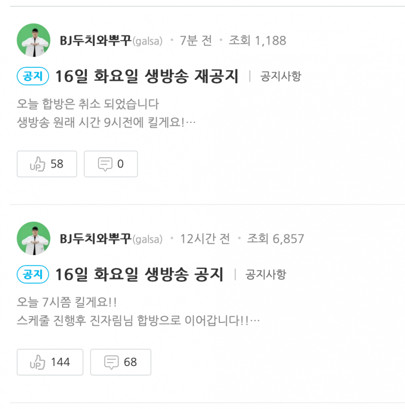 진자림과 합방 예정이었던 bj 두치와뿌꾸 나락 감지를 느낀건가