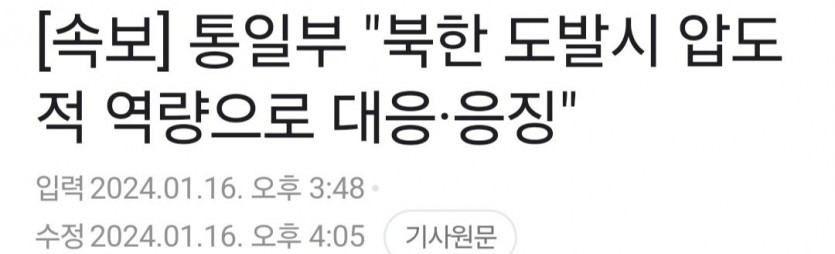 [속보] 통일부 "북한 도발시 압도적 역량으로 대응·응징