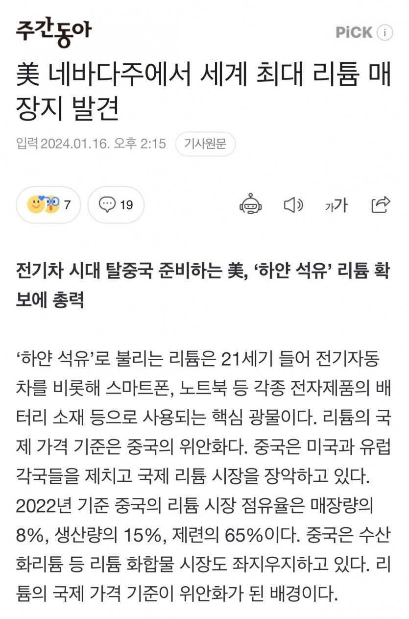 美 네바다주에서 세계 최대 리튬 매장지 발견