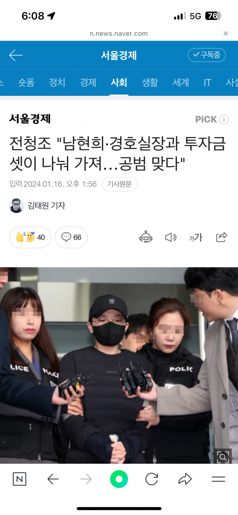 전천조 . 남현희 경호실장 공범맞다 투자금 3명이서 나눠 가져