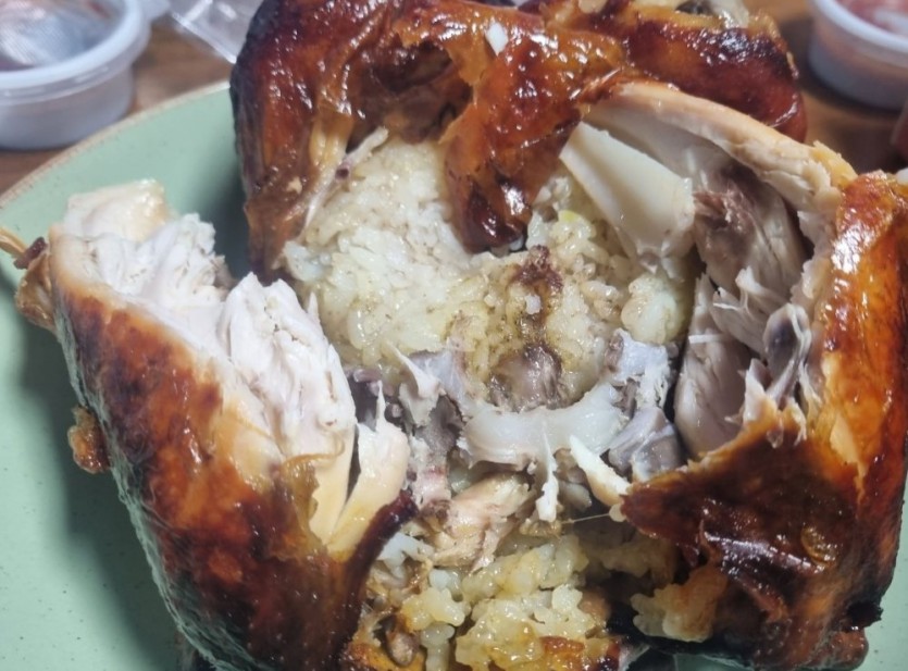지금 먹고 있는 간식 찹쌀통닭구이 .