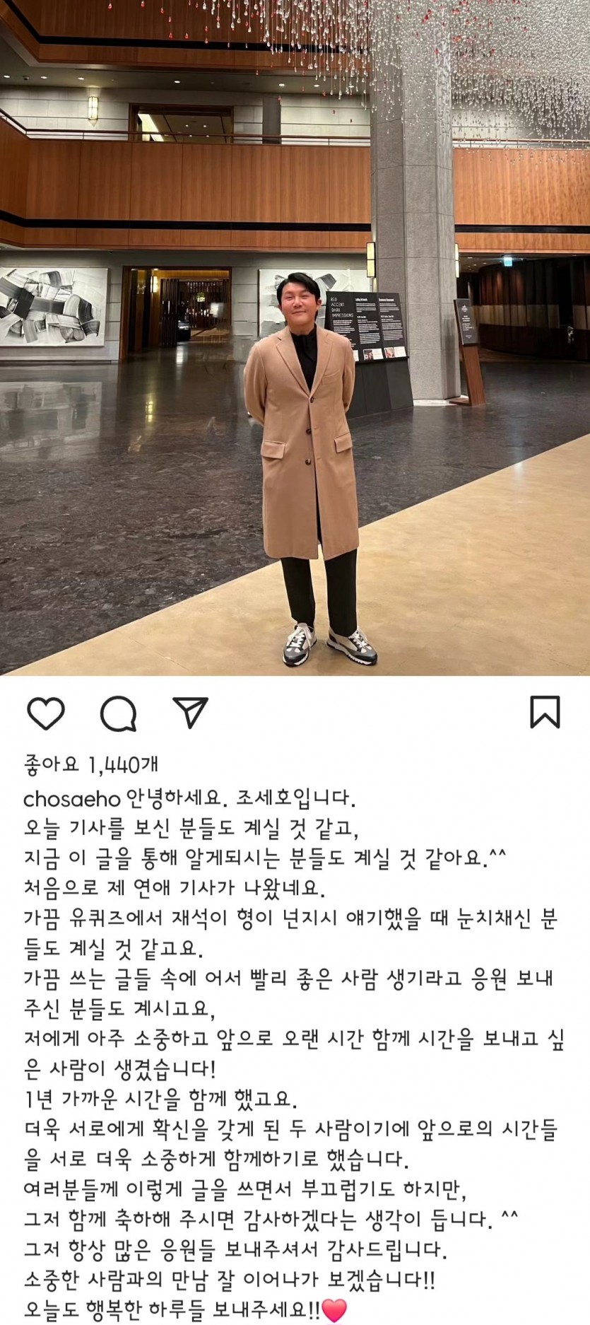 실시간 연애 인정 조세호 인스타 업데이트 jpg