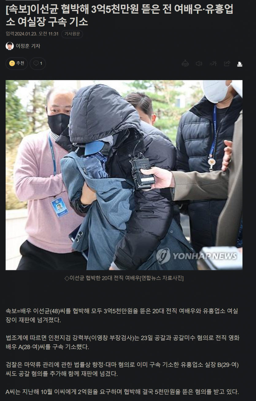 [속보]이선균 협박해 3억5천만원 뜯은 전 여배우·유흥업소 여실장 구속 기소