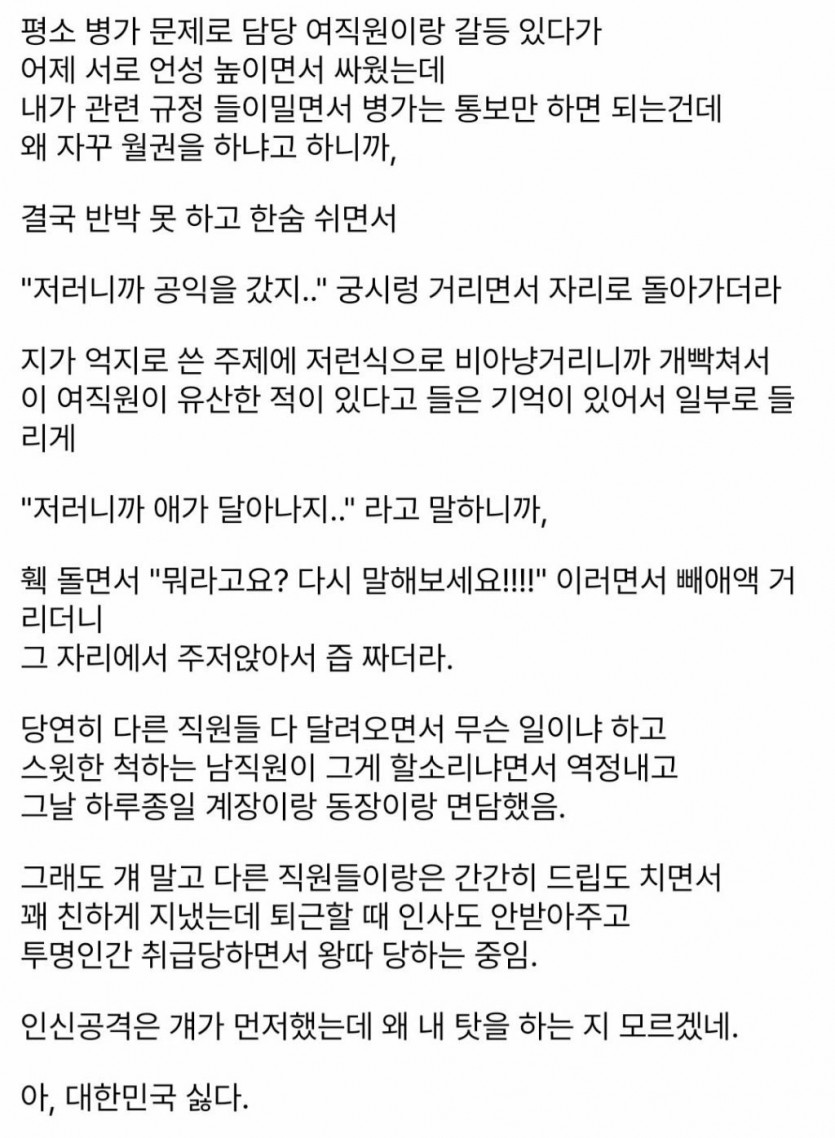 공익이랑 여직원의 갈등..