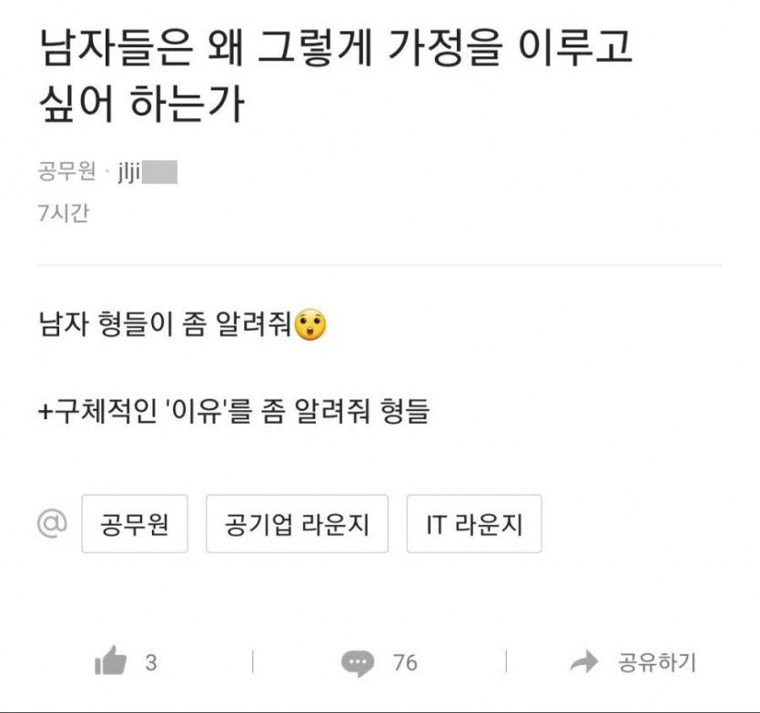 남자들은 왜 그렇게 가정을 이루고 싶어 하는가?