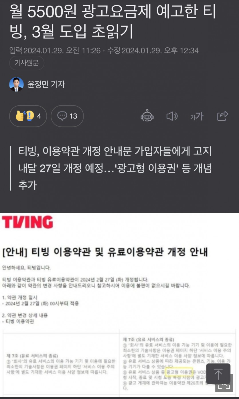 티빙, 넷플릭스 따라 5500원 광고 요금제 도입한다.