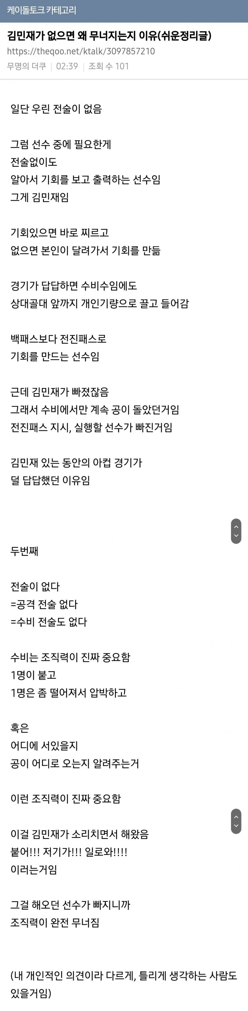 김민재가 없으면 우리나라 수비가 무너지는 이유