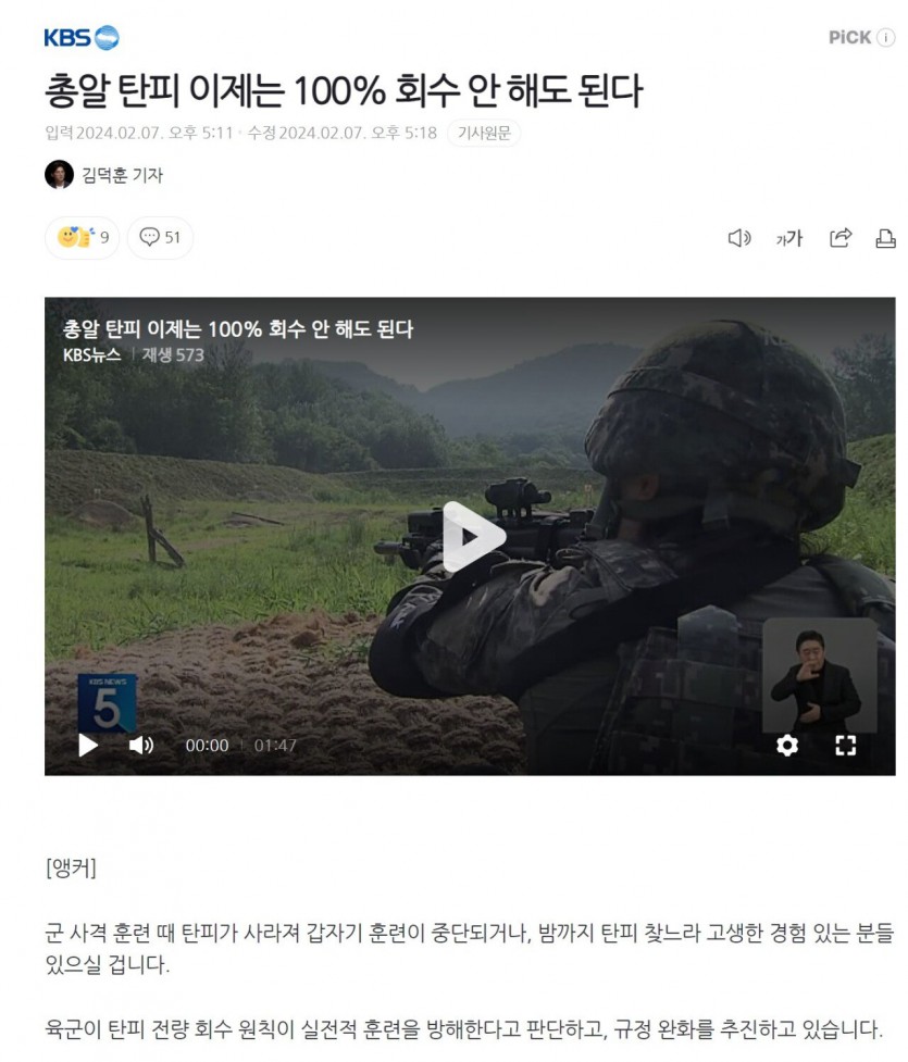 군대 총알 탄피 이제는 100% 회수 안해도 된다