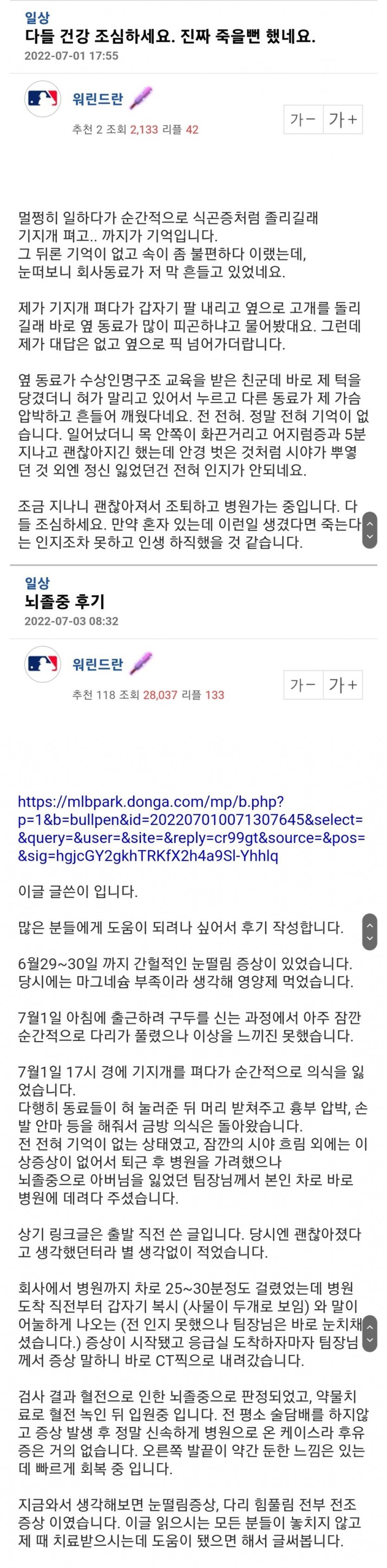 소름돋는 뇌졸중 뇌경색 전조 증상