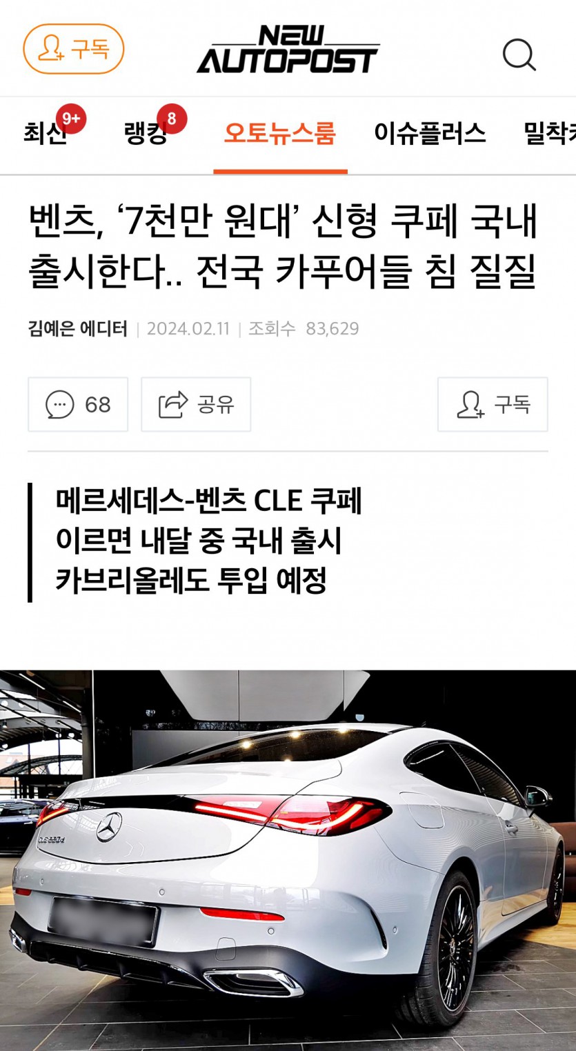 벤츠, ‘7천만 원대’ 신형 쿠페 국내 출시한다.. 전국 카푸어들 침 질질