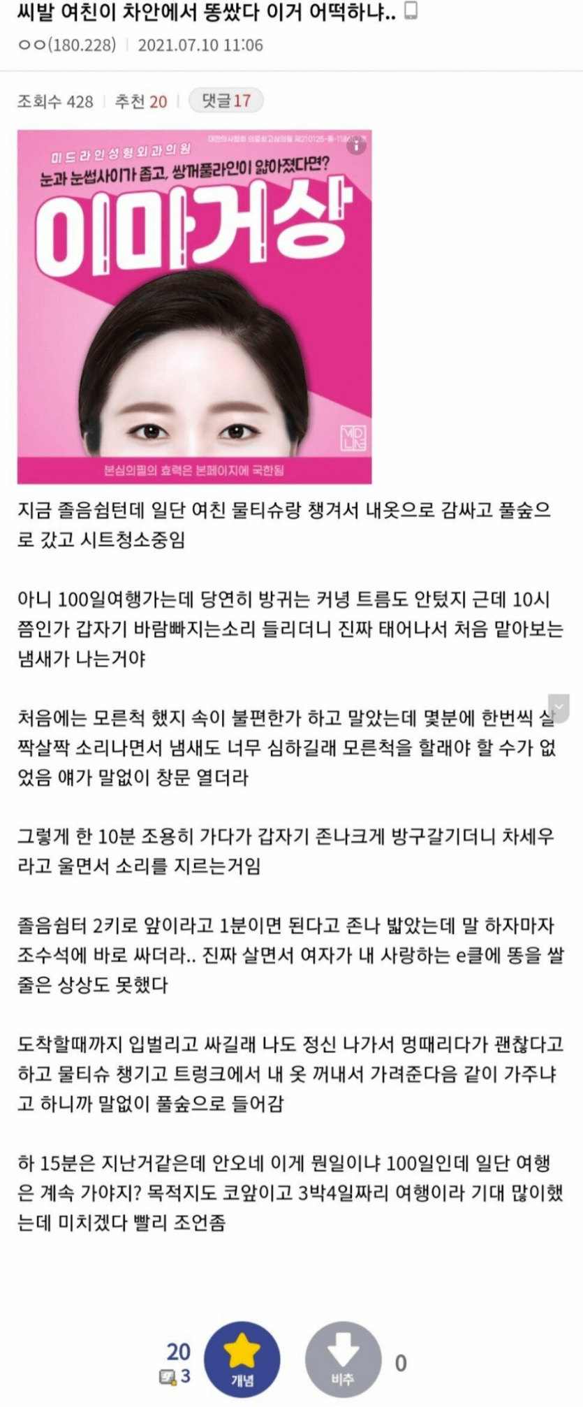 남친 차안에서 똥싼 여친...ㄷㄷㄷ