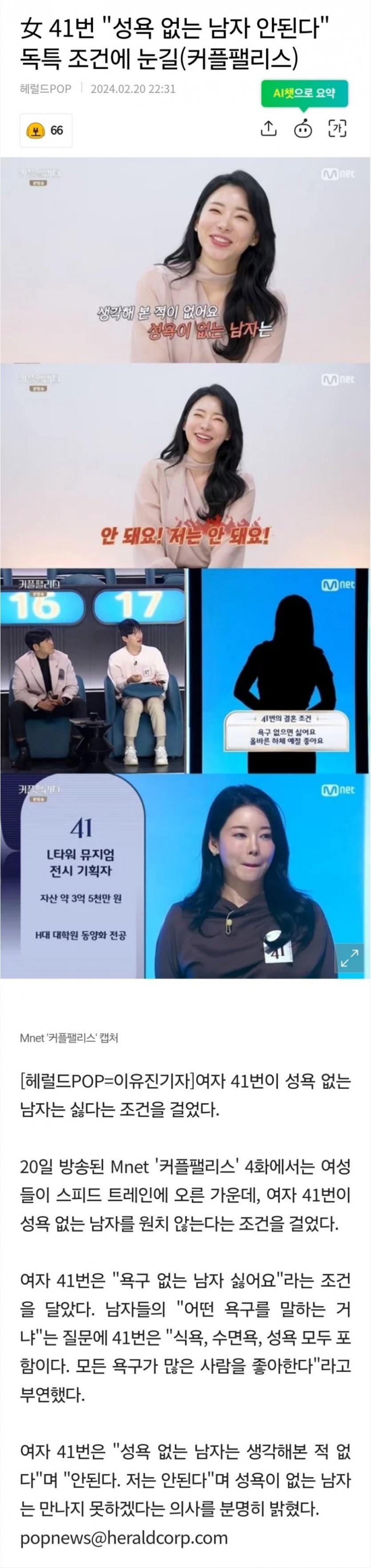 41번 女 "성욕 없는 남자 안된다" 독특한 조건