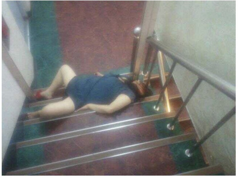 멧돼지 가 계단을 막고 있다.