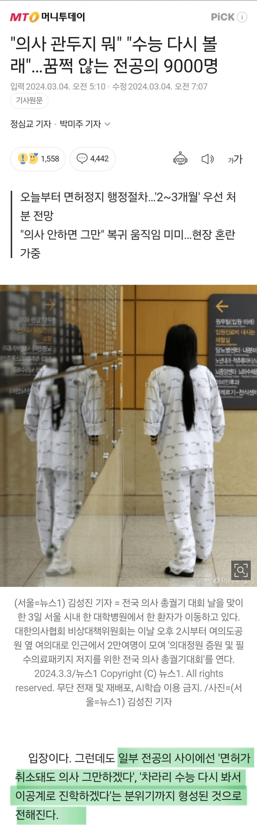 "의사 관두지 뭐" "수능 다시볼래" 꿈쩍않는 전공의들 ㄷㄷ...NEWS
