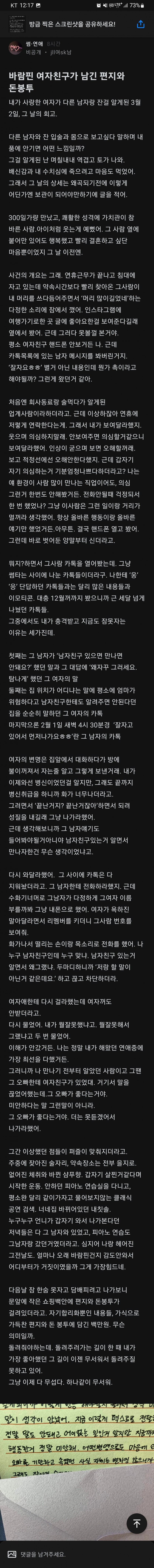 오늘자 바람핀 여자친구가 남긴 편지와 돈봉투 ㄷㄷ..JPG(+인증)