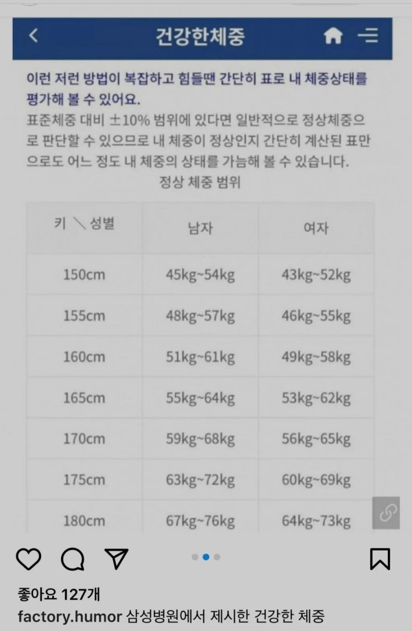 삼성병원에서 제시한 건강한 체중