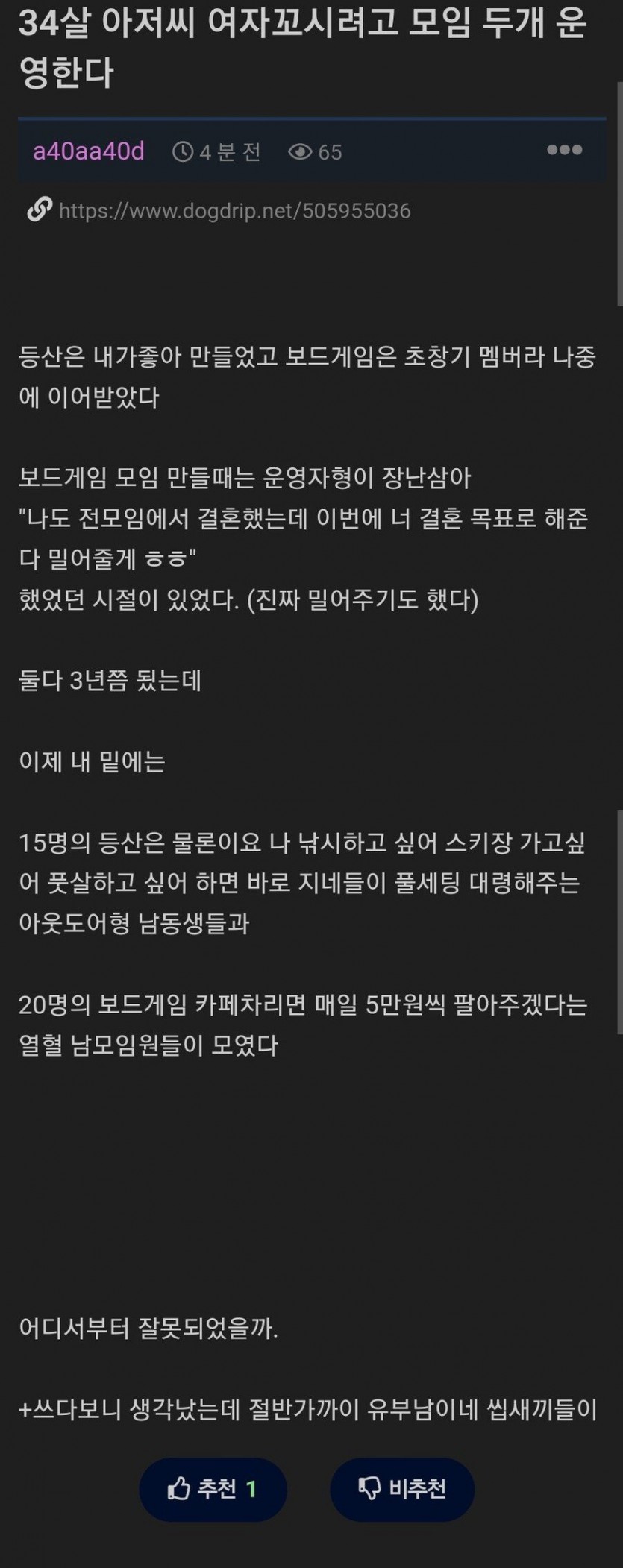 여자 꼬실려고 모임 2개 운영하는 34살 아재.jpg