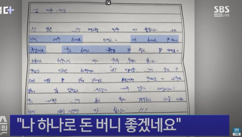 SBS 제작진에게 보낸 자필 편지가 공개됐습니다.