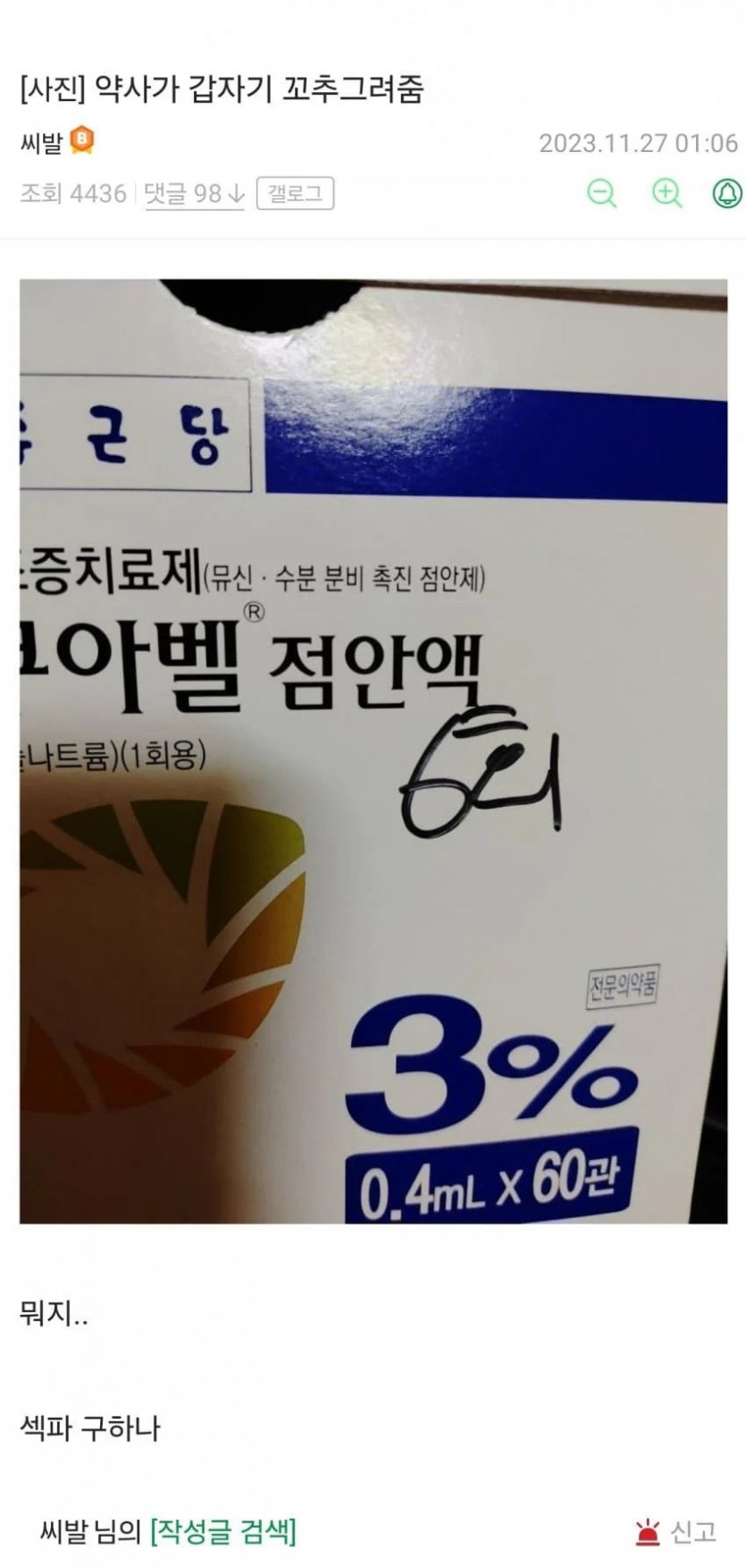 여자 약사가 갑자기 꼬츄 그려줌.