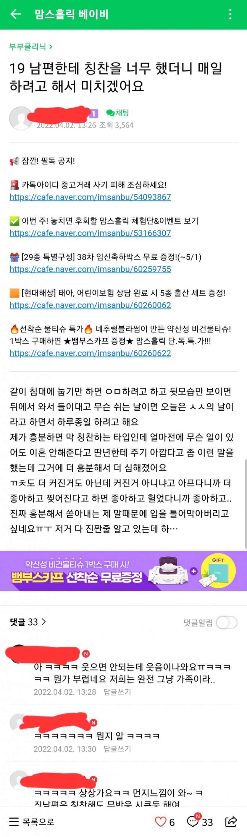남편한테 ㅅㅅ 칭찬을 너무 많이 해서 생기는 일 jpg