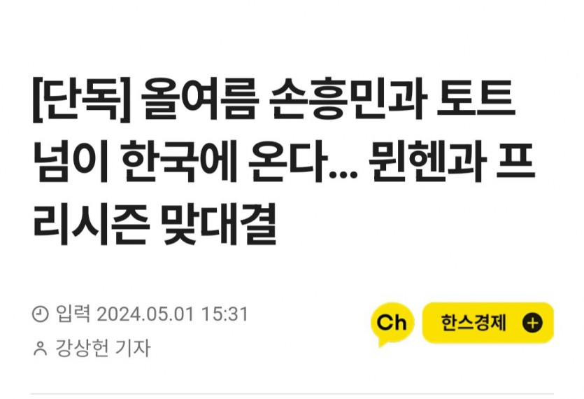 유럽 구단의 여름 일정에 정통한 관계자는 최근 본지에 “토트넘이 다시 한국으로 오는 분위기다. 올여름 한국에서 바이에른 뮌헨과 친선전을 하는 것을 추진 중으로 안다”고 귀띔했다.