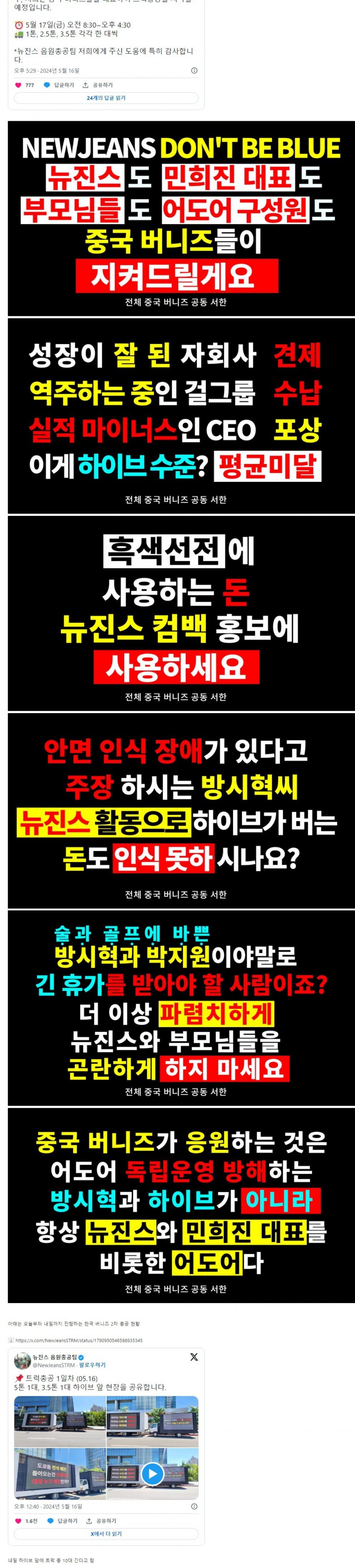 지금 이틀동안 하이브에 총공세 들어간다는 한국.중국 뉴진스 팬들