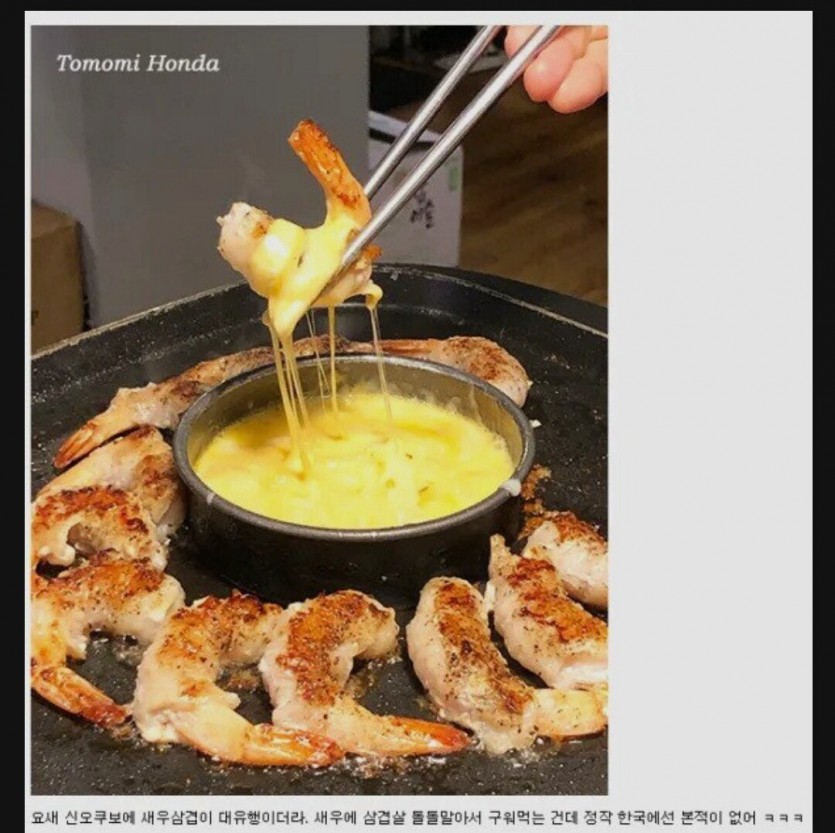 일본에서 현제 유명한 새우삼겹살 구이