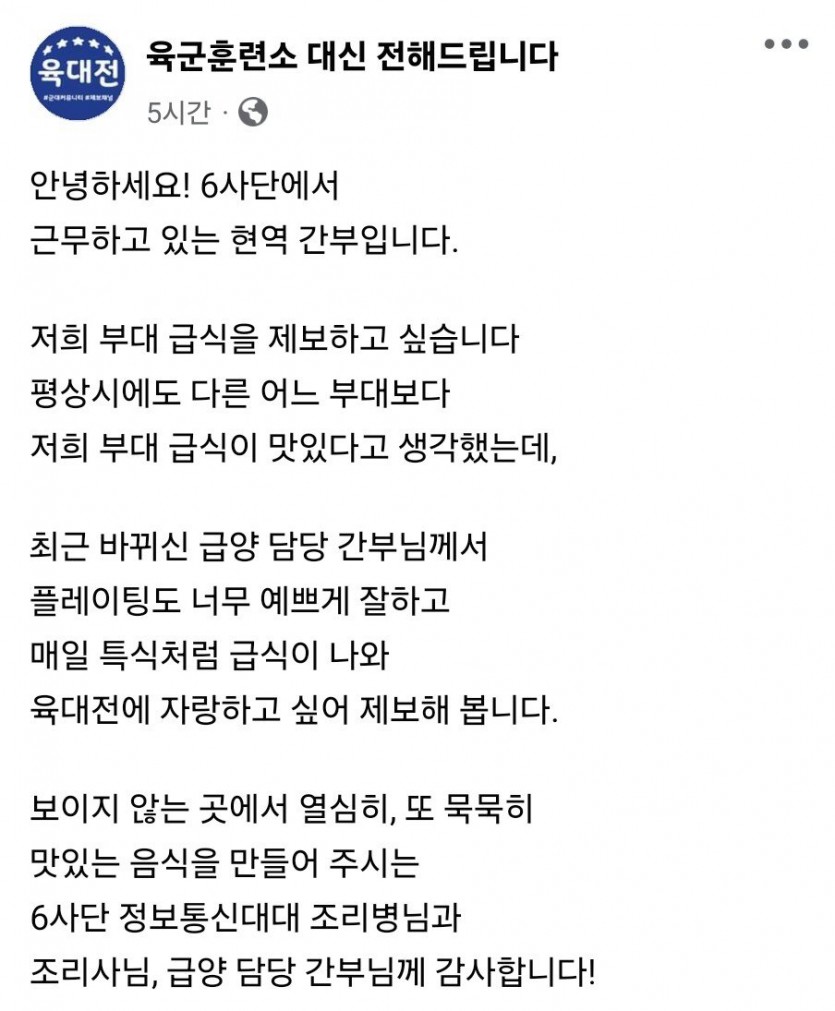 육군 6사단 최근 급식수준 근황....jpg