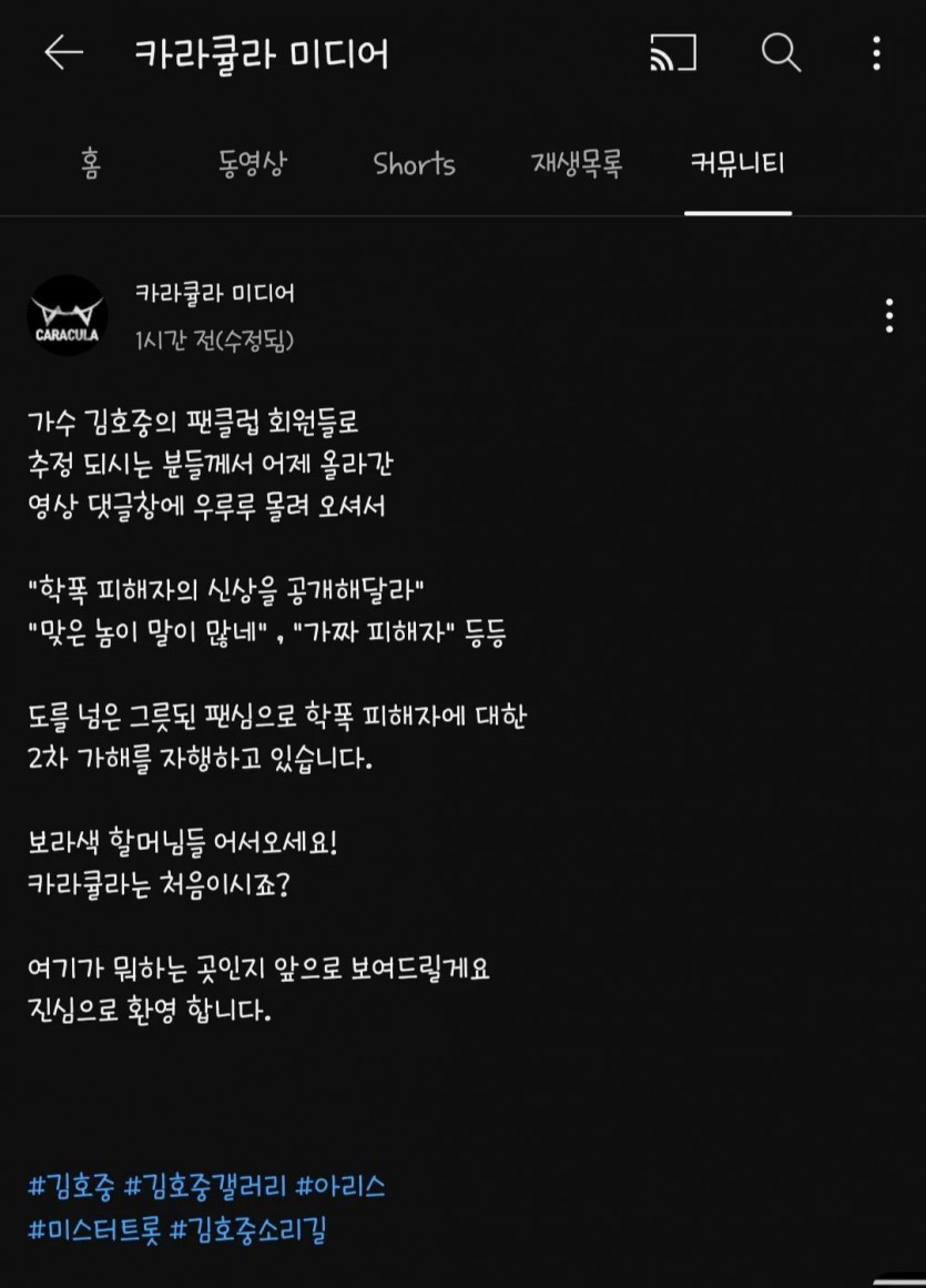 김호중 학폭 피해자 영상 업로드 후, 김호중 팬들 반응