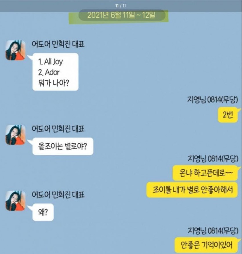 그러면서 "민 대표는 모 무속인에게 사망한 자신의 여동생이 빙의했다고 믿고 자신의 여동생 이름으로 부르며 따르고 있다"며 "이 무속인이 사실상 어도어의 경영을 지시하고 있다. 뉴진스 데뷔조 멤버 선정 때도, 무속인이 '귀신에 씌었다'고 하자 해당 연습생을 탈락시켰다"고 전했다.