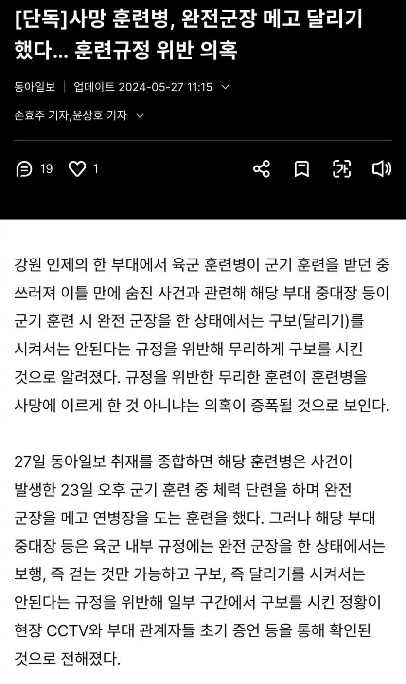 사망 훈련병, 완전군장 메고 달리기 했다. 훈련규정 위반 의혹