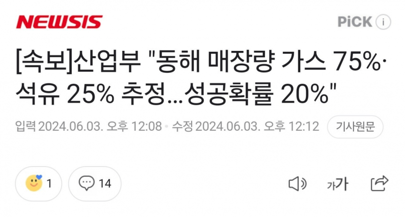 [속보] "동해 매장량 가스 75%·석유 25% 추정…성공확률 20%