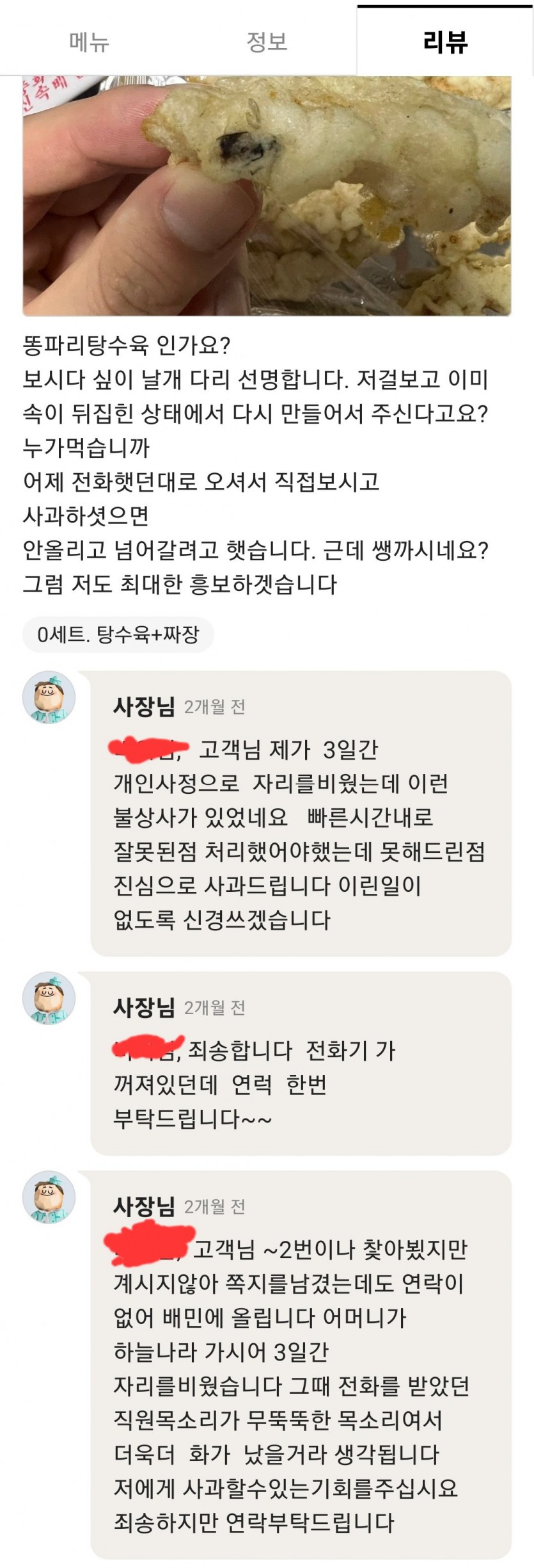 탕수육에서 파리 나온 리뷰...사장님대처..jpg