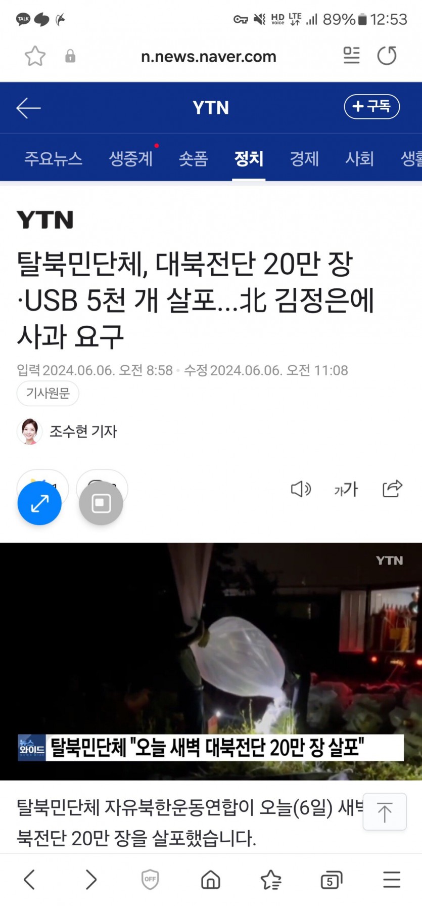 새벽 대북전단 20만장 기습 살포