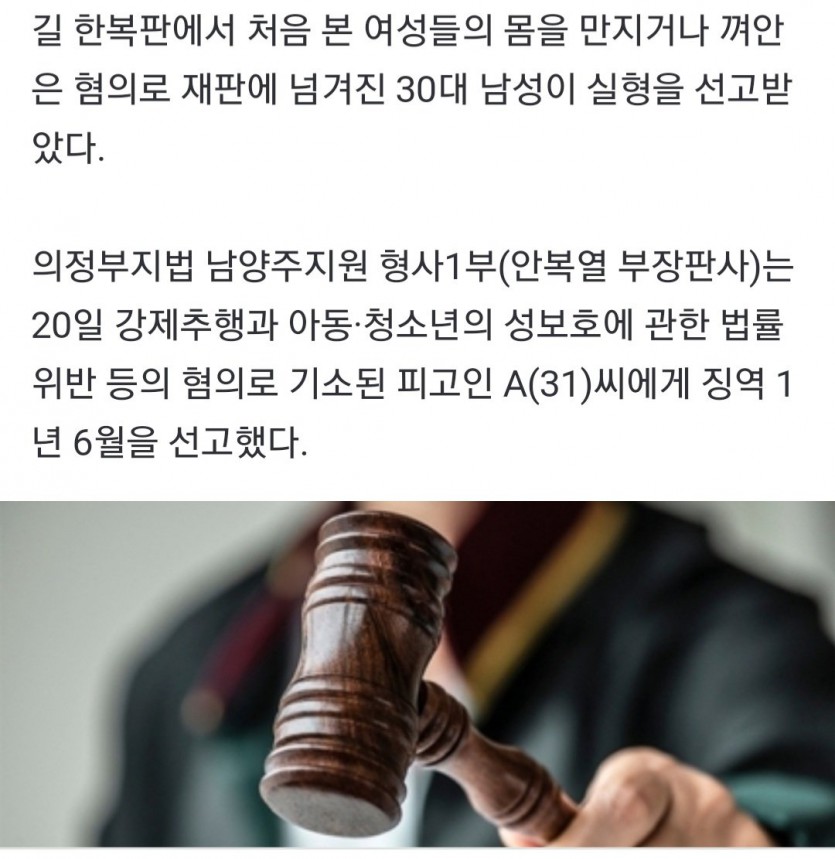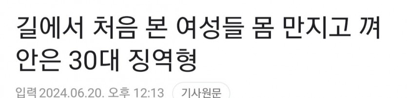 길에서 처음본 여성들 껴안은 30대 남성 징역 1년 6개월