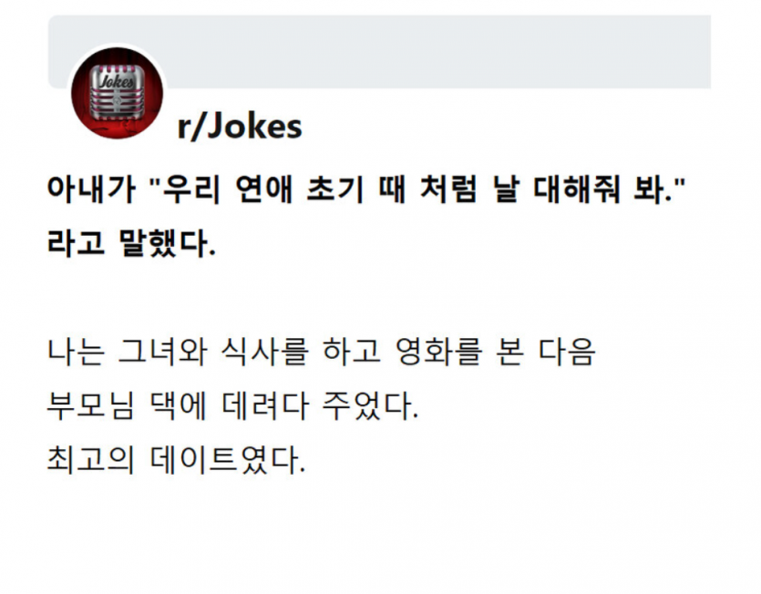 아내가 자기랑 연애 초기 때처럼 대해 달라고 해줬다.