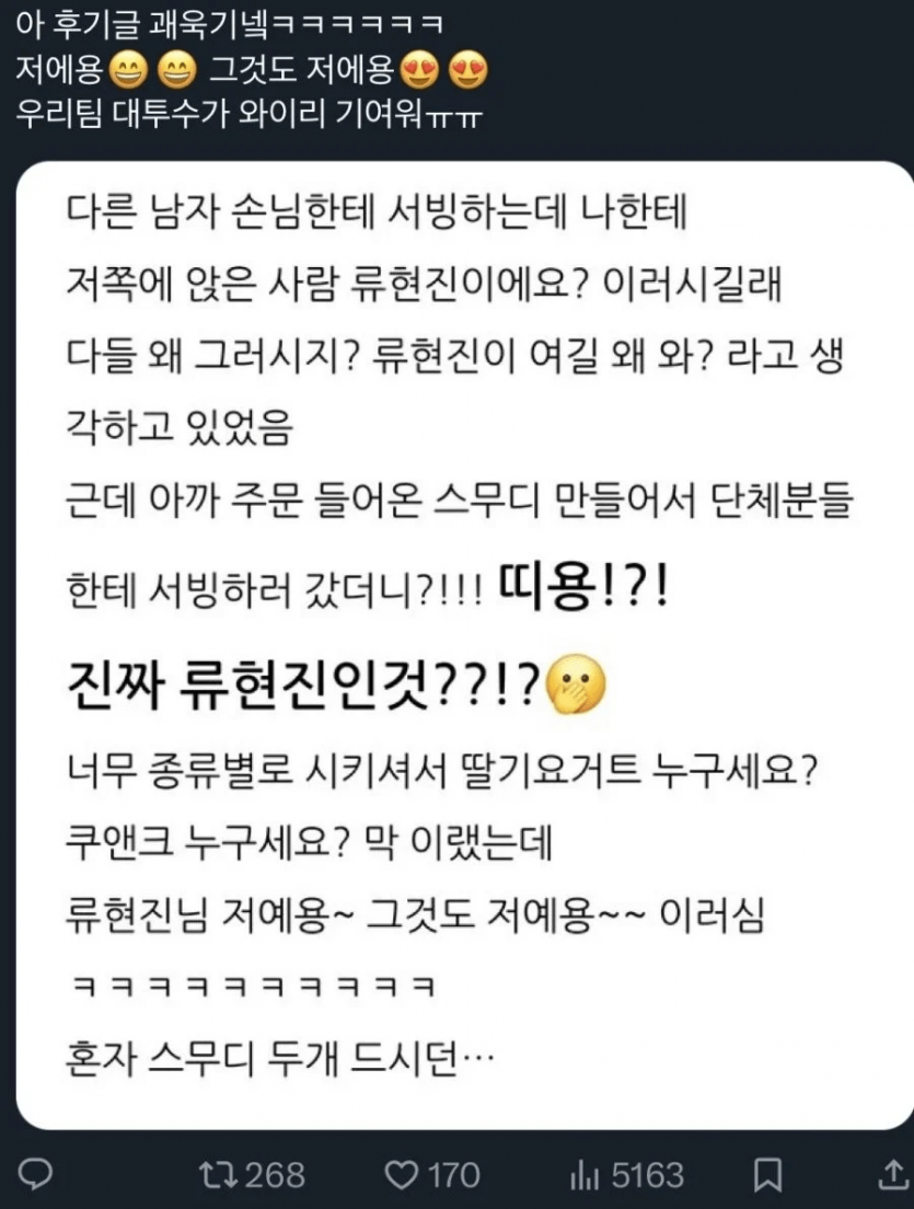 피방에서 목격된 선수들 류현진 황준서 문동주 채은성 등등