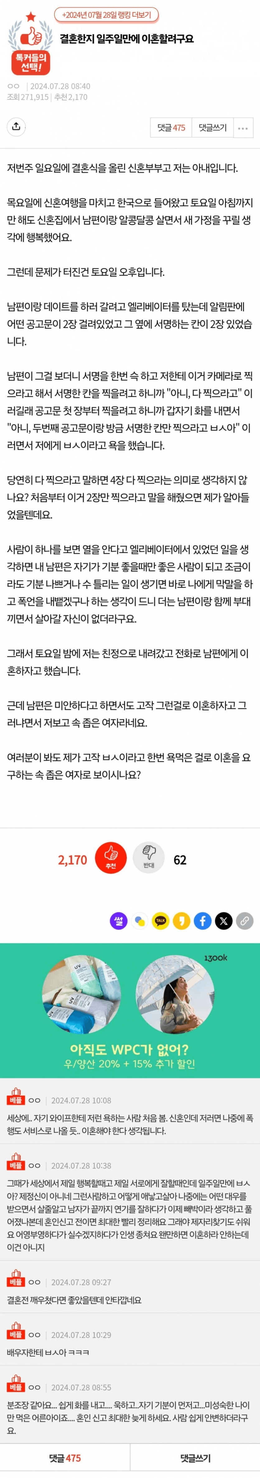 결혼한지 일주일만에 이혼하려고 하는 아내..