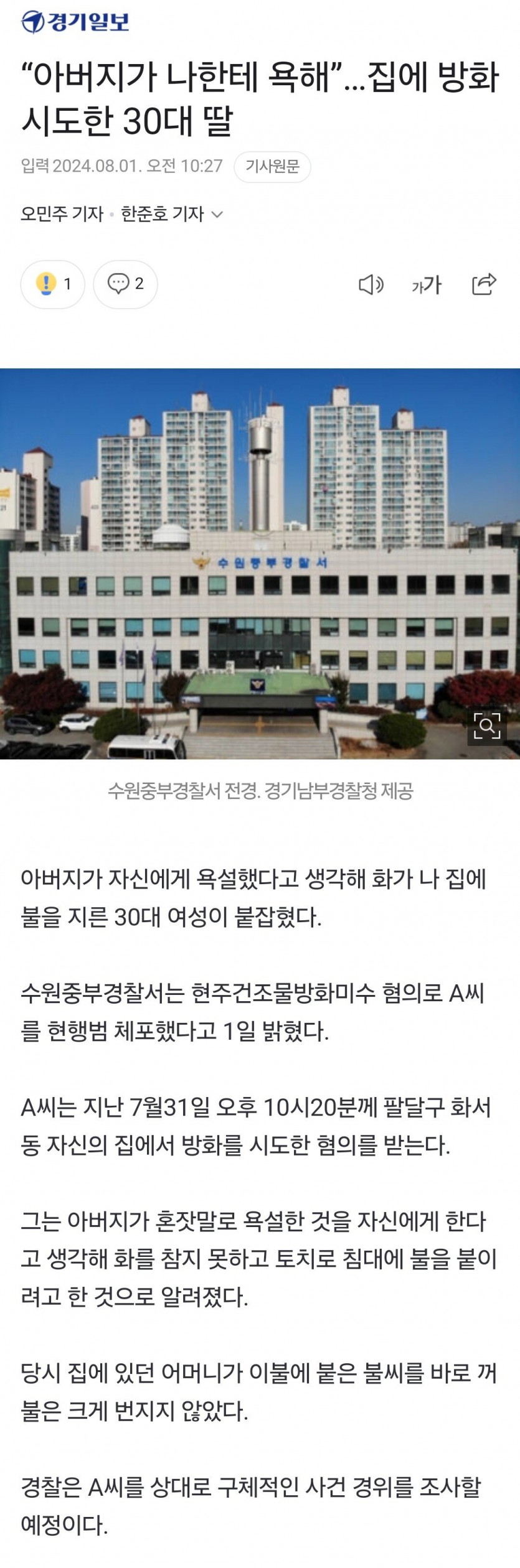 아빠가 욕해서 집에 불 지르려 한 30대 딸
