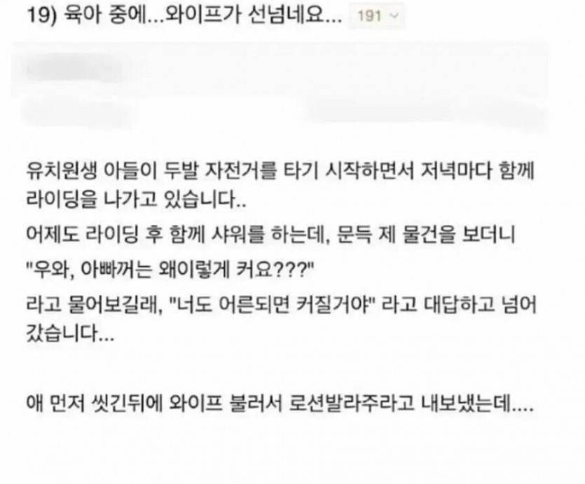 와이프가 선넘네요.자식에게 성교육 하는 아내..