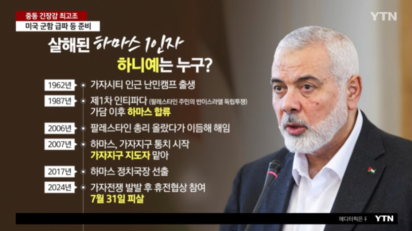 하니예는 하마스 라인에서 상대적 온건파로 인질, 휴전 협상을 진행중이었음