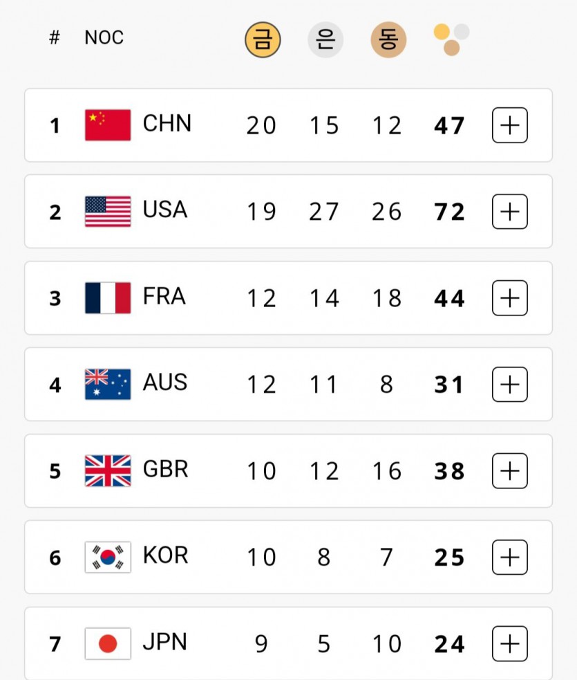 실시간 대한민국 올림픽 영국 제치고 종합 5위 ㄷㄷㄷㄷㄷㄷㄷ