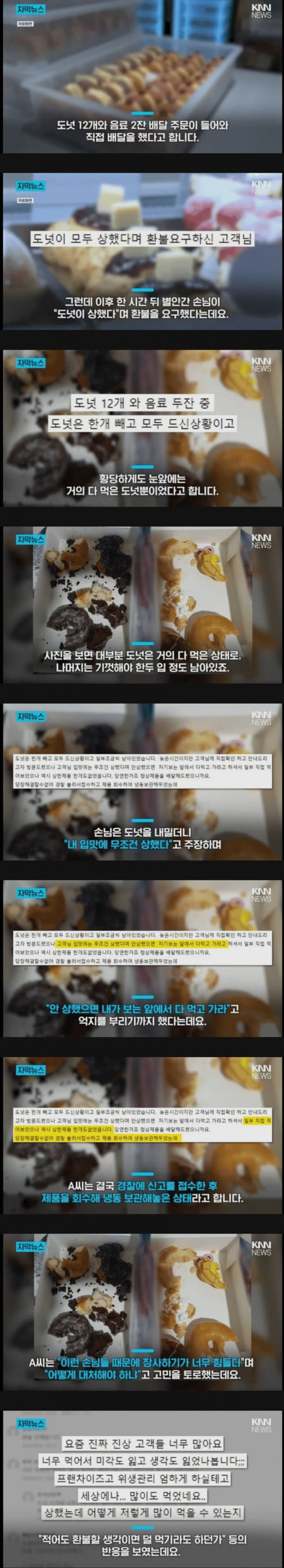 배달온거 도넛 대부분 먹었지만 상했으니 환불해주세요.....