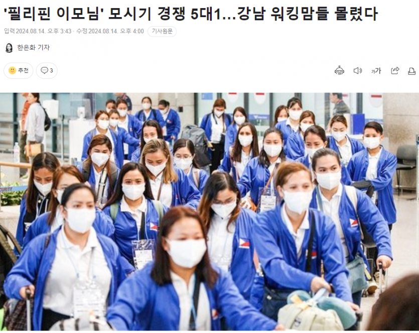 '필리핀 이모님' 모시기 경쟁 5대1…강남 워킹맘들 몰렸다