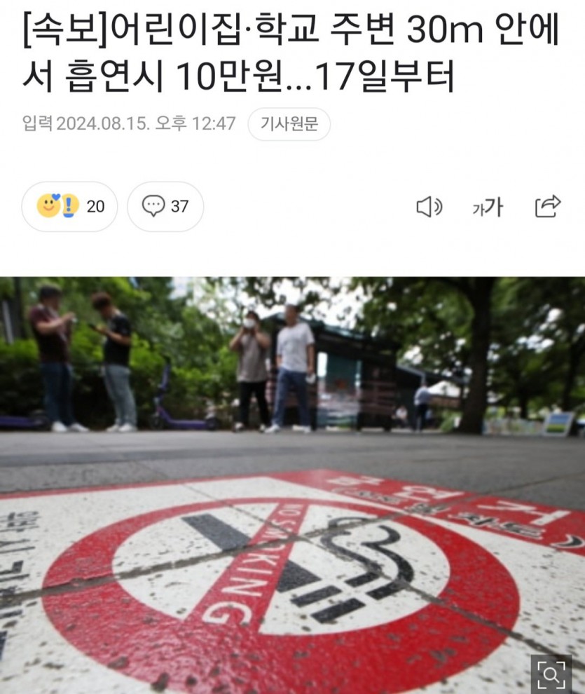 [속보]어린이집·학교 주변 30m 안에서 흡연시 10만원...17일부터