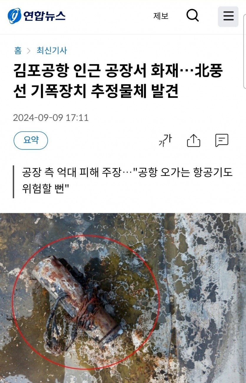 [속보] 北풍선 기폭장치에 김포공항 인근 화재 발생