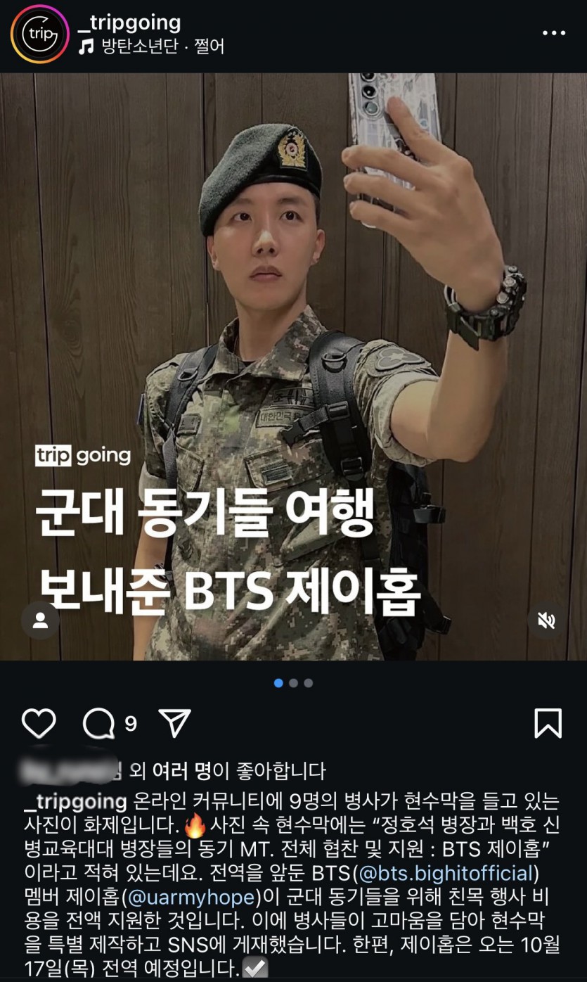 군대 동기들 여행 보내준 BTS 제이홉 ㄷㄷ.jpg