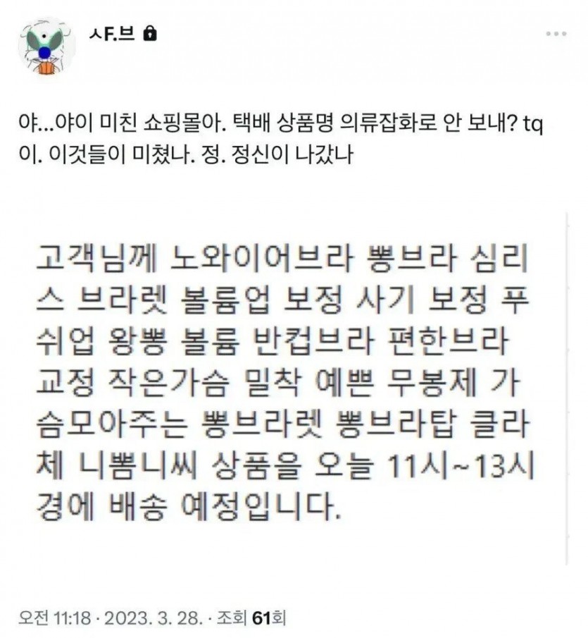 브라자 산 사람이 받은 택배 문자.JPG